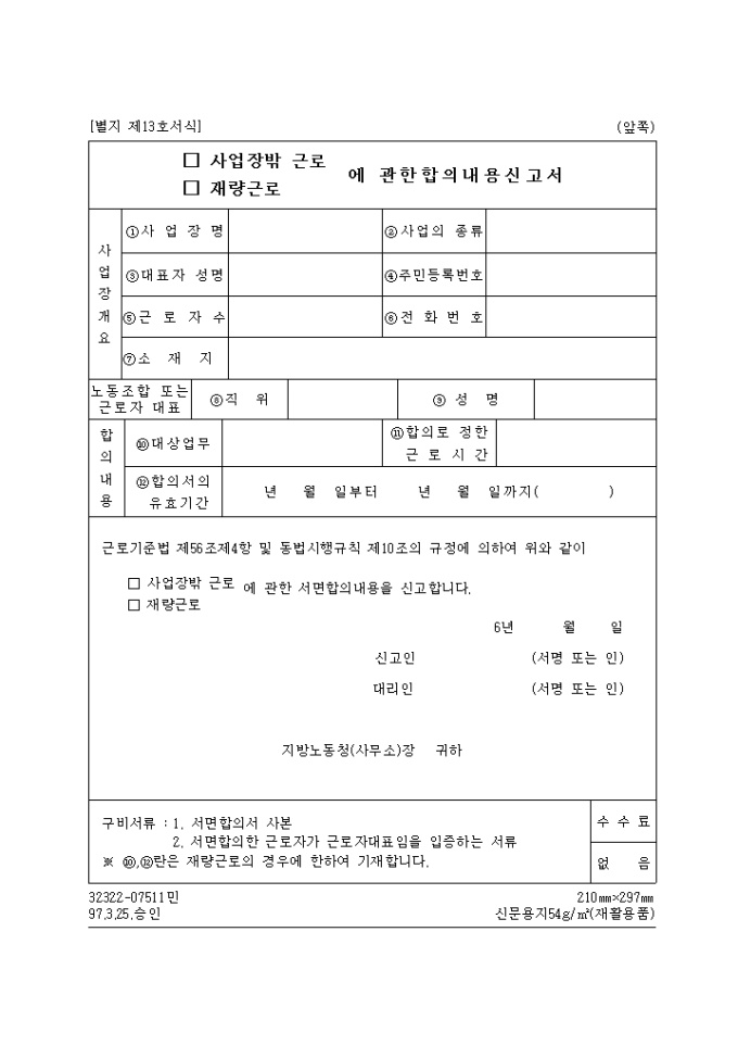 (사업장밖근로, 재량근로)에 관한합의내용신고서
