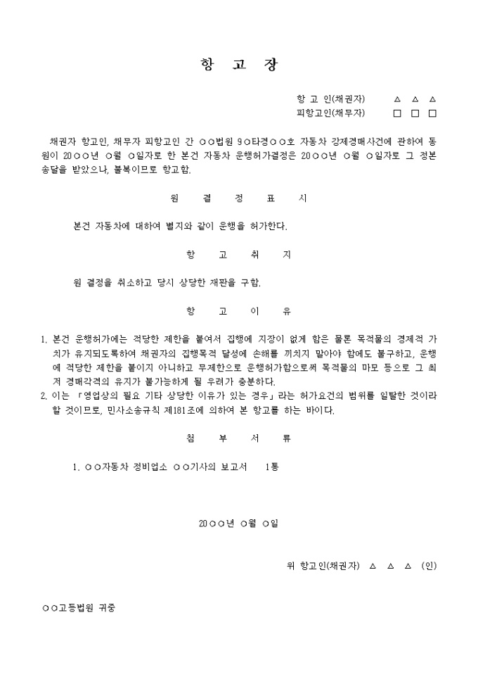 1. 본건 운행허가에는 적당한 제한을 붙여서 집행에 지장이 없게 함은 물론 목적물의 경제적 가치가 유지되도록하여 채권자의 집행목적 달성에 손해를 끼치지 말아야 함에도 불구하고, 운행에 적당한 제한을 붙이지 아니하고 무제한으로 운행허가함으로써 목적물의 마모 등으로 그 최저 경매각격의 유지가 불가능하게 될 우려가 충분하다.