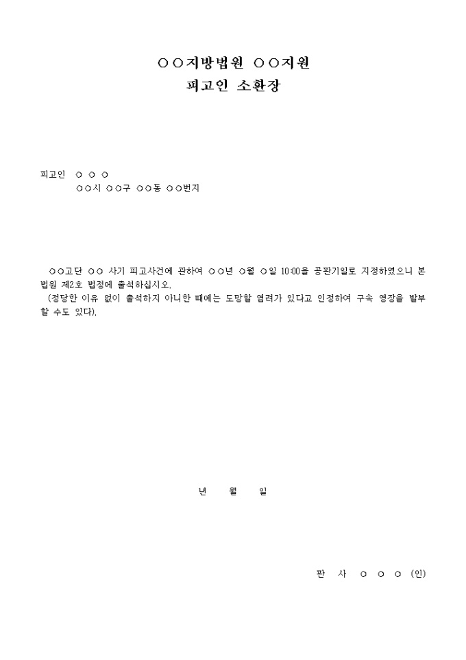 9,000원/월피고인소환장 입니다. ○○고단 ○○ 사기 피고사건에 관하여 ○○년 ○월 ○일 10:00을 공판기일로 지정하였으니 본법원 제2호 법정에 출석하십시오. (정당한 이유 없이 출석하지 아니한 때에는 도망할 염려가 있다고 인정하여 구속 영장을 발부할 수도 있다). ...