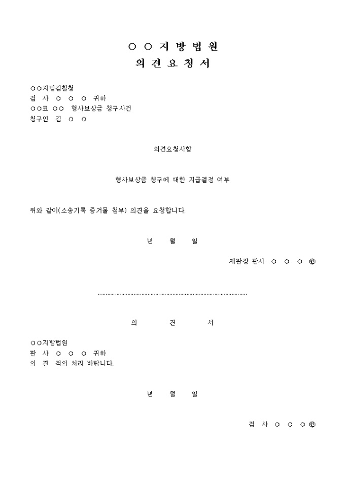 9,000원/월의견요청서(검사) 입니다. 의견요청사항 형사보상금 청구에 대한 지급결정 여부 위와 같이(소송기록 증거물 첨부) 의견을 요청합니다. ...