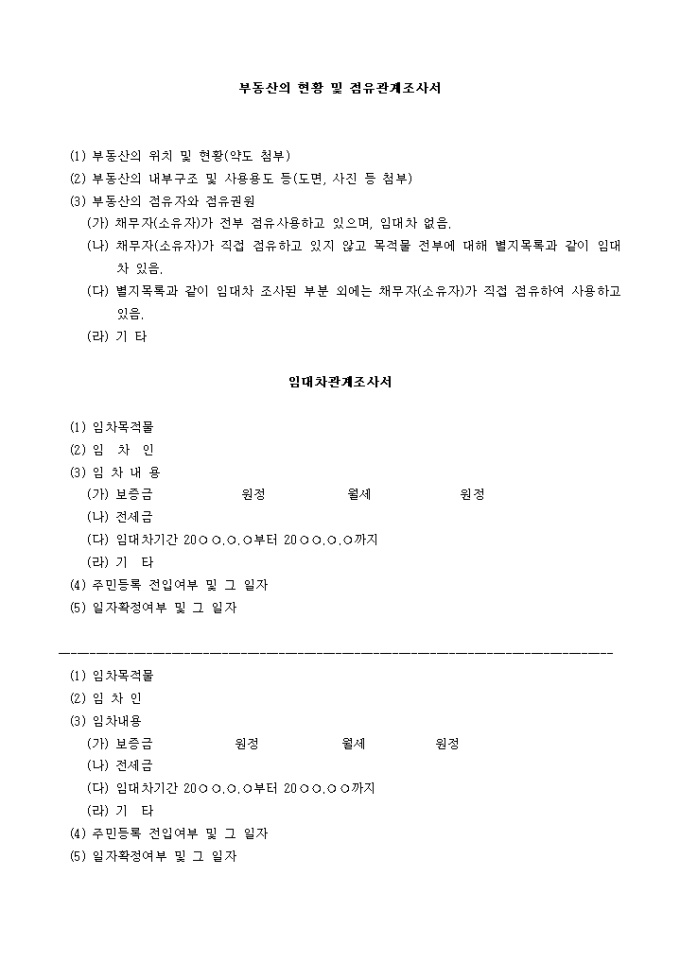 첨 부 1. 부동산의 현황 및 점유관계조사서