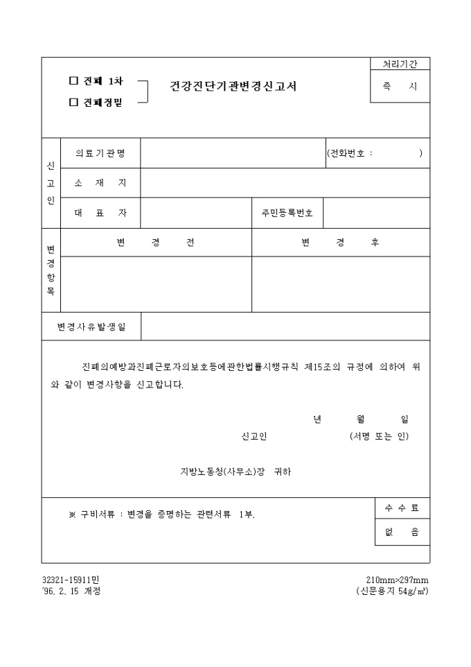 (진폐1차, 진폐정밀)건강진단기관변경신고서