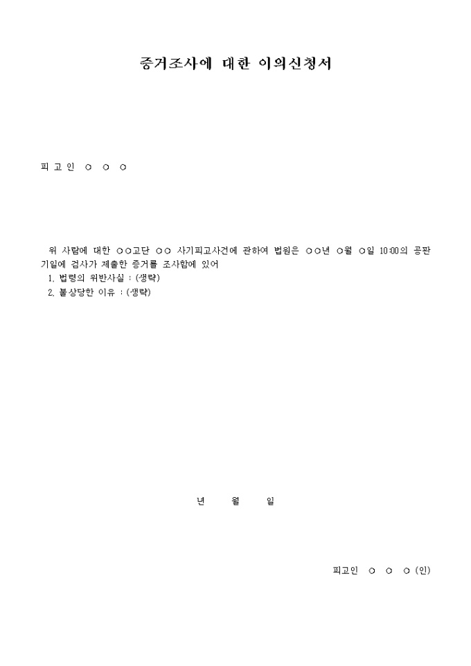 증거조사에 대한 이의신청서