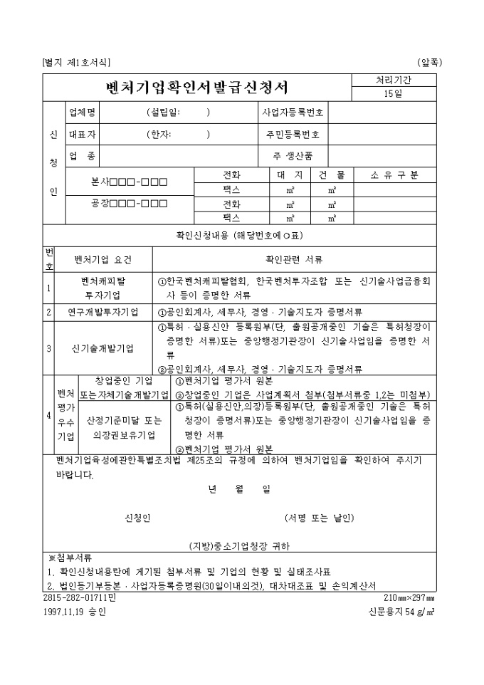 9,000원/월중기청에서 벤처기업임을 확인받으실 경우 사용하시는 서식입니다. 발급신청에 관한 모든 서식이 일괄적으로 포함되어 있는 서식입니다. 원하시는 결과 있으시길 기원드립니다.