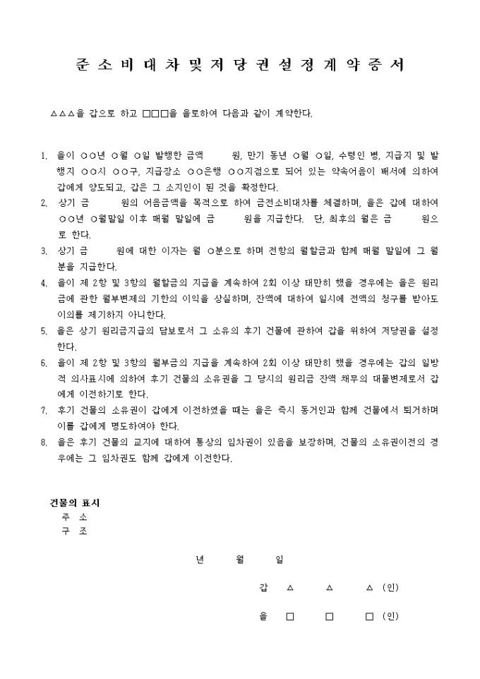 준소비대차 및 저당권설정계약증서 예제 입니다.