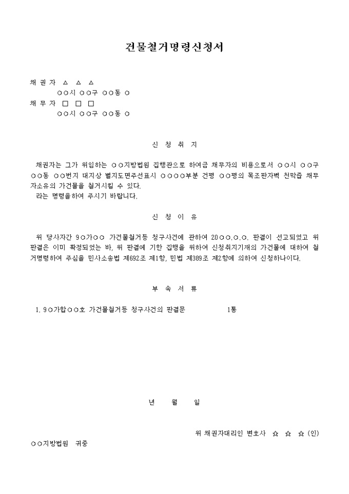 가건물철거 명령신청서