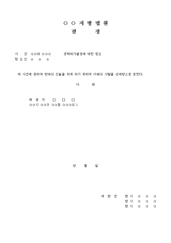9,000원/월경락허가결정에 대한 항고에 관해 반대의 진술을 하게 하기 위하여 ...사람을 상대방으로 정한다라는 내용의 결정서입니다.