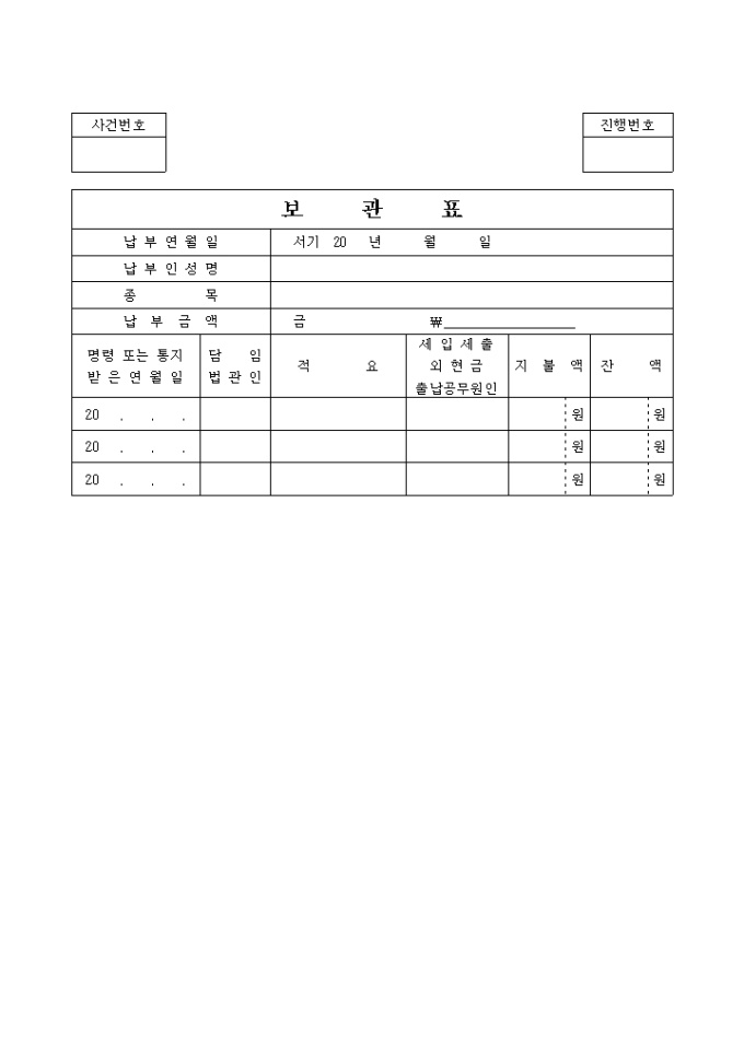 9,000원/월..사건에 관련된 납부금의 보관표입니다.