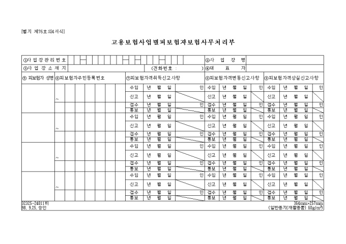 고용보험 사업별피보험자보험사무처리부