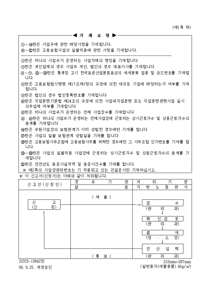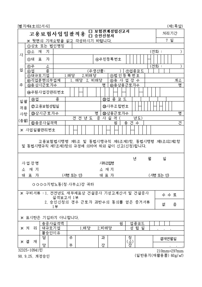 고용보험 사업일괄적용(보험관계성립신고서, 승인신청서)