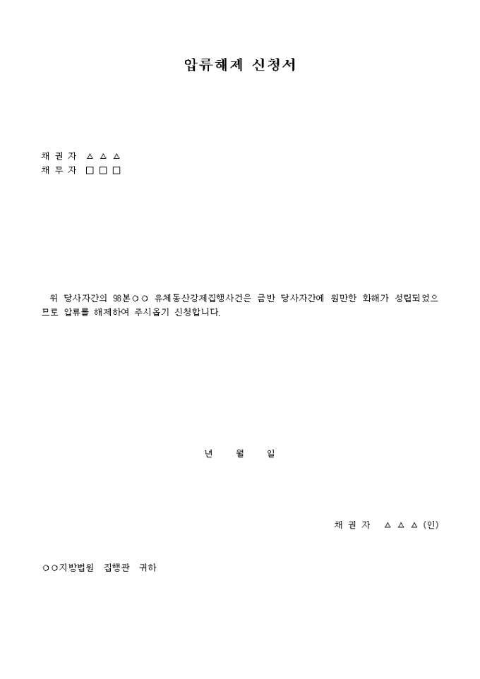 압류해제신청서