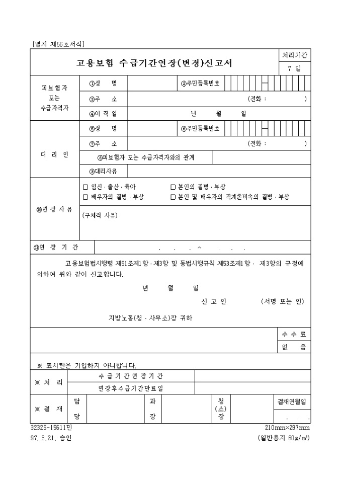 고용보험 수급기간연장(변경)신고서