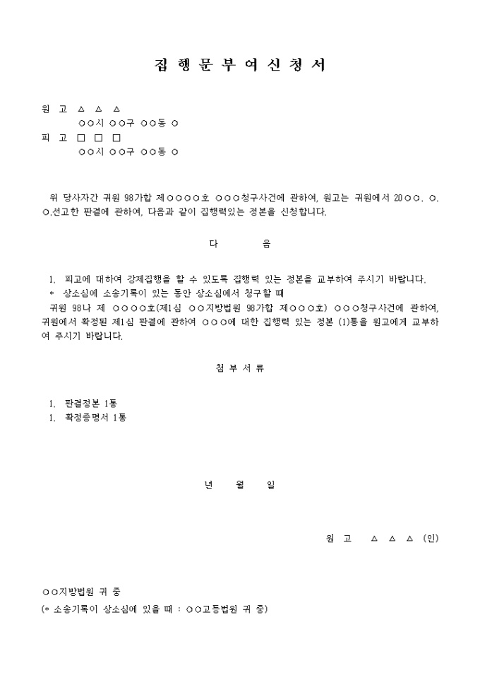 9,000원/월피고에 대하여 강제집행을 할 수 있도록 집행력 있는 정본을 교부하기를 요구하는 내용입니다.