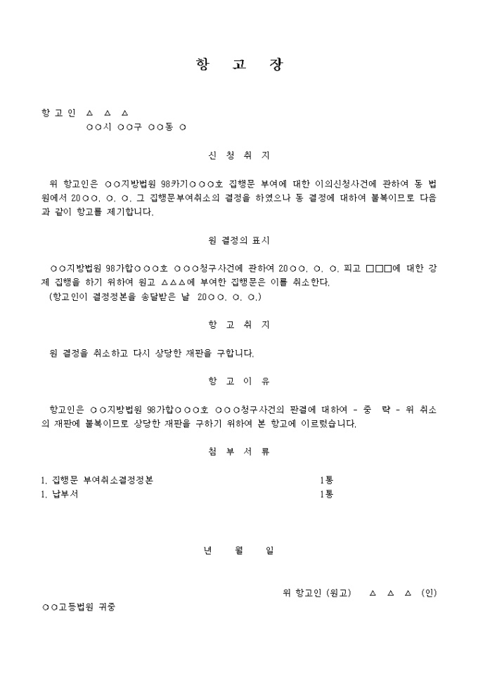 ...호 집행문 부여에 대한 이의신청사건에 관하여 집행문부여취소의 결정을 하였으나 동 결정에 대하여 불복함으로 항고를 제기한다는 내용입니다.