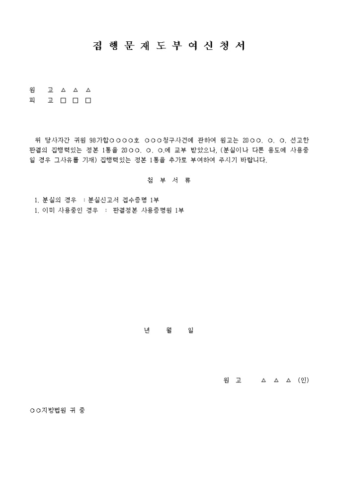 집행문재도 부여신청서