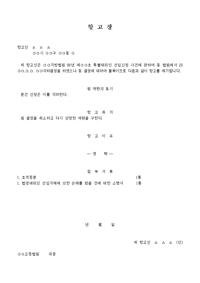특별대리인 선임신청 사건에 관하여 동 법원에서 20 . . . 각하결정을 하였으나 동 결정에 대하여 불복함으로 항고를 제기한다는 내용입니다.