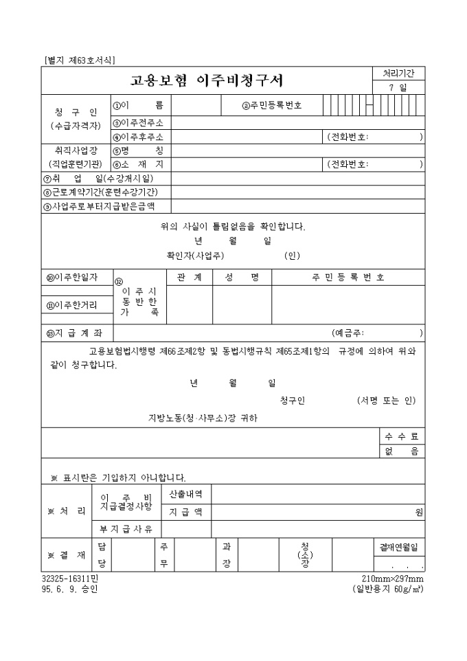 * 고용보험법시행령 제66조제2항 및 동법시행규칙 제65조제1항의 규정에 의하여 위와 같이 청구합니다.