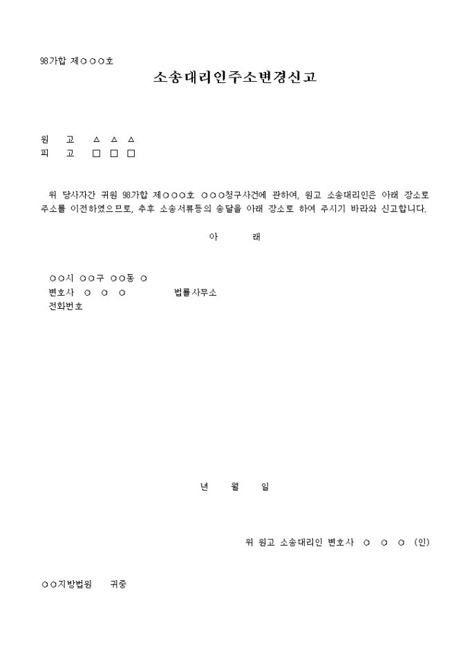 소송대리인 주소변경 신고서