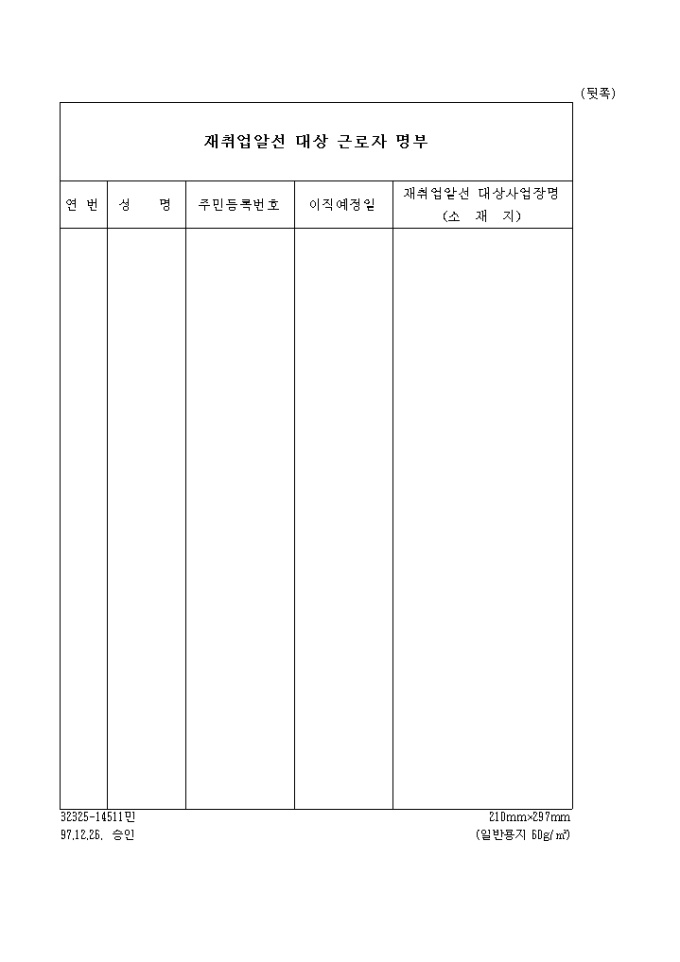 9,000원/월고용보험 재취업 알선(계획,계획변경)신고서 양식입니다.