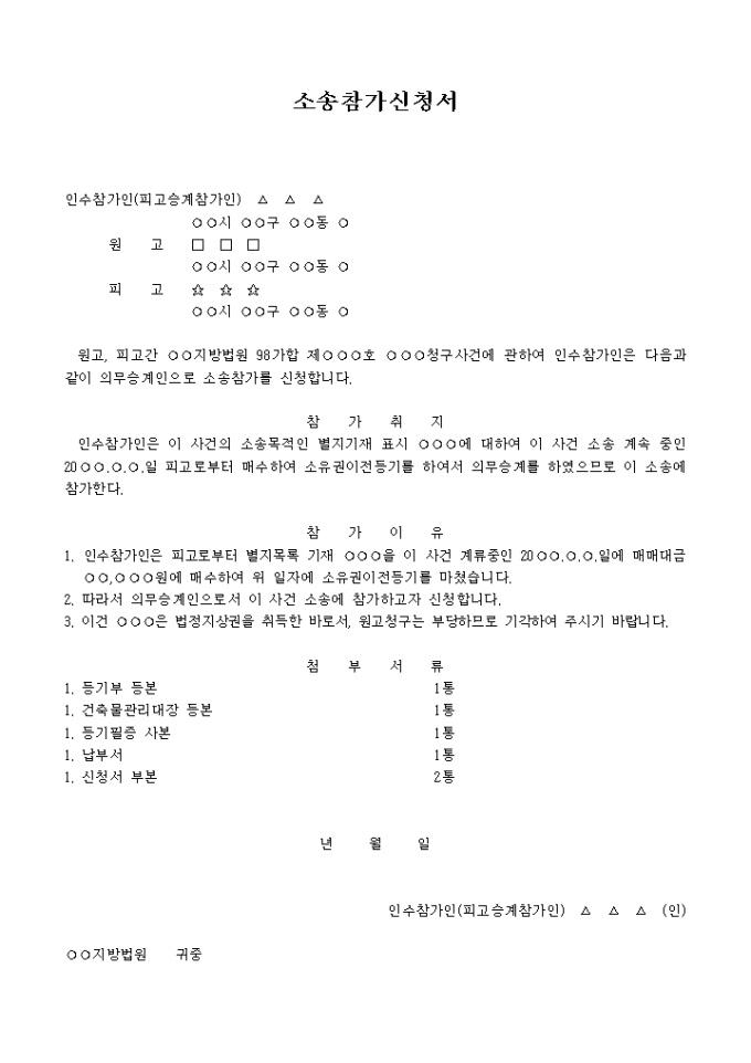 의무승계인의소송참가 신청서