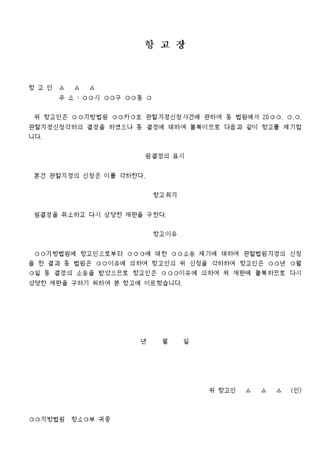 각하의결정에 대한 항고장