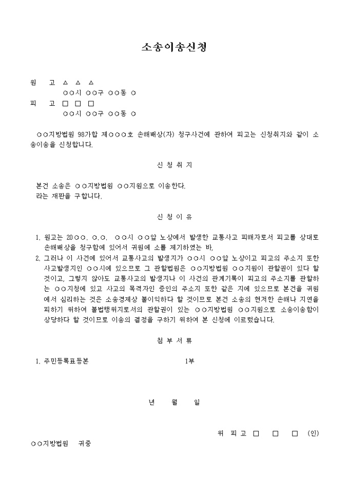 9,000원/월손해배상(자) 청구사건에 관하여 소송은 ○○지방법원 ○○지원으로 이송한다라는 재판을 구하는 내용입니다.