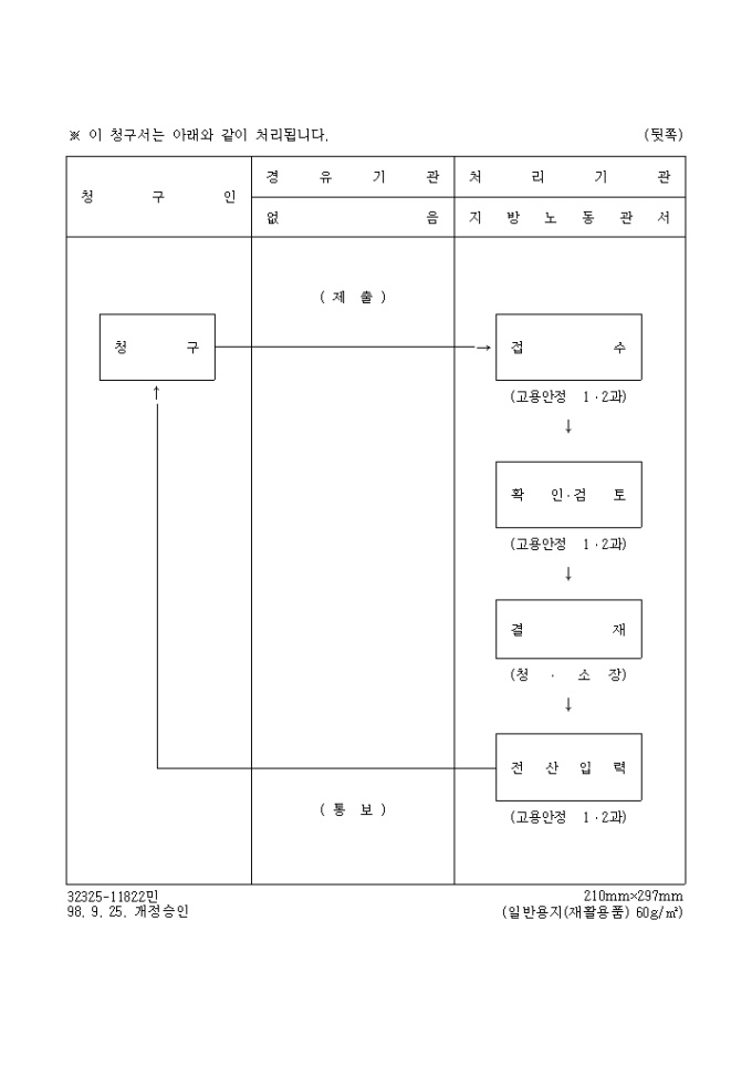 * 고용보험법시행령 제13조제1항 및 동법시행규칙 제15조의 규정에 의하여 위와 같이 청구합니다.