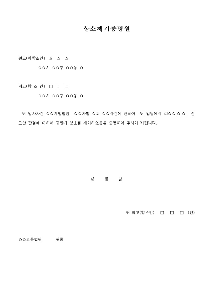 9,000원/월○사건에 관하여 위 법원에서 20○○.○.○. 선고한 판결에 대하여 귀원에 항소를 제기하였음을 증명하는 양식입니다.