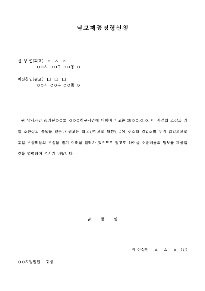 담보제공명령 신청서