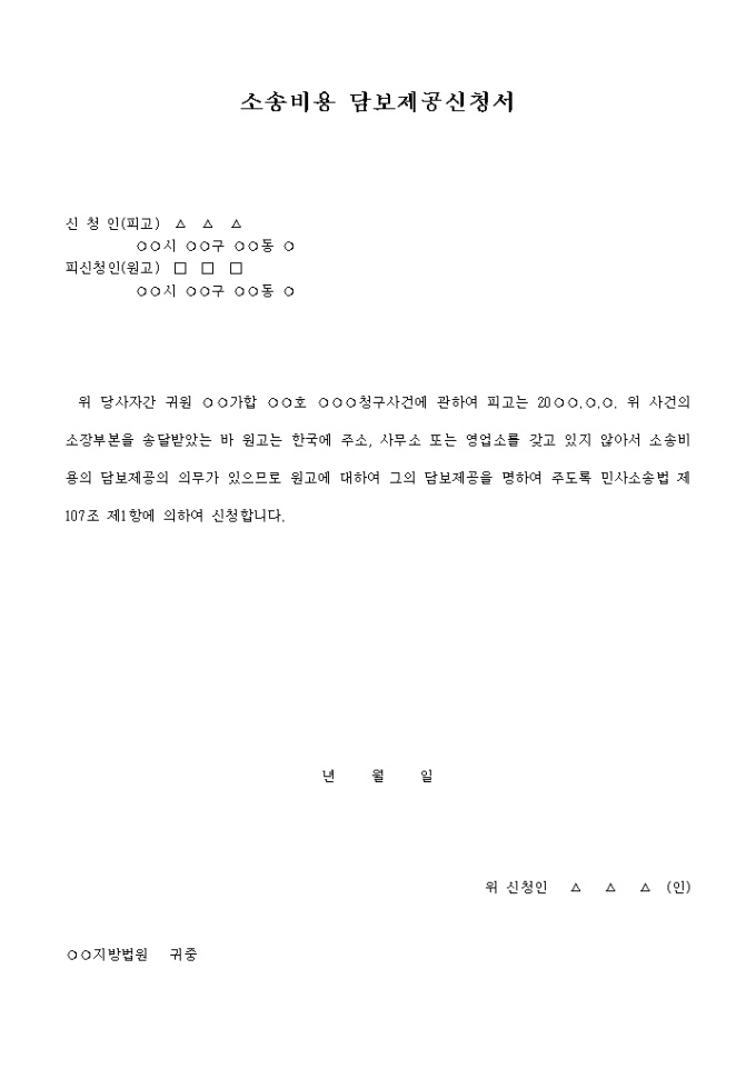 소송비용 담보제공신청서