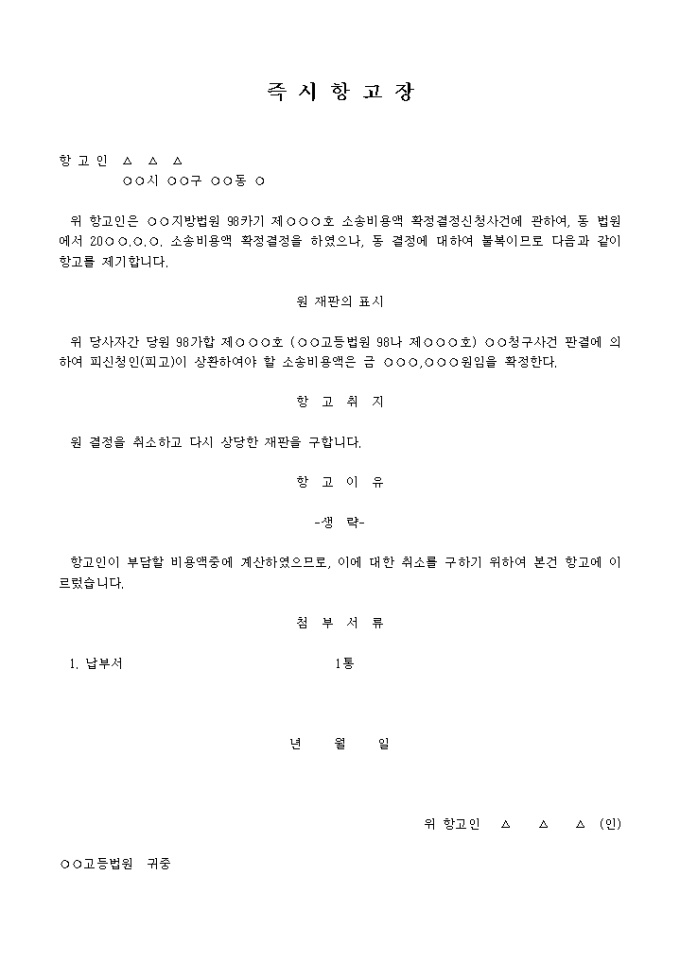 소송비용액 확정결정신청사건에 관하여 소송비용액 확정결정을 하였으나, 동 결정에 대하여 불복함으로 항소를 제기한다는 내용입니다.