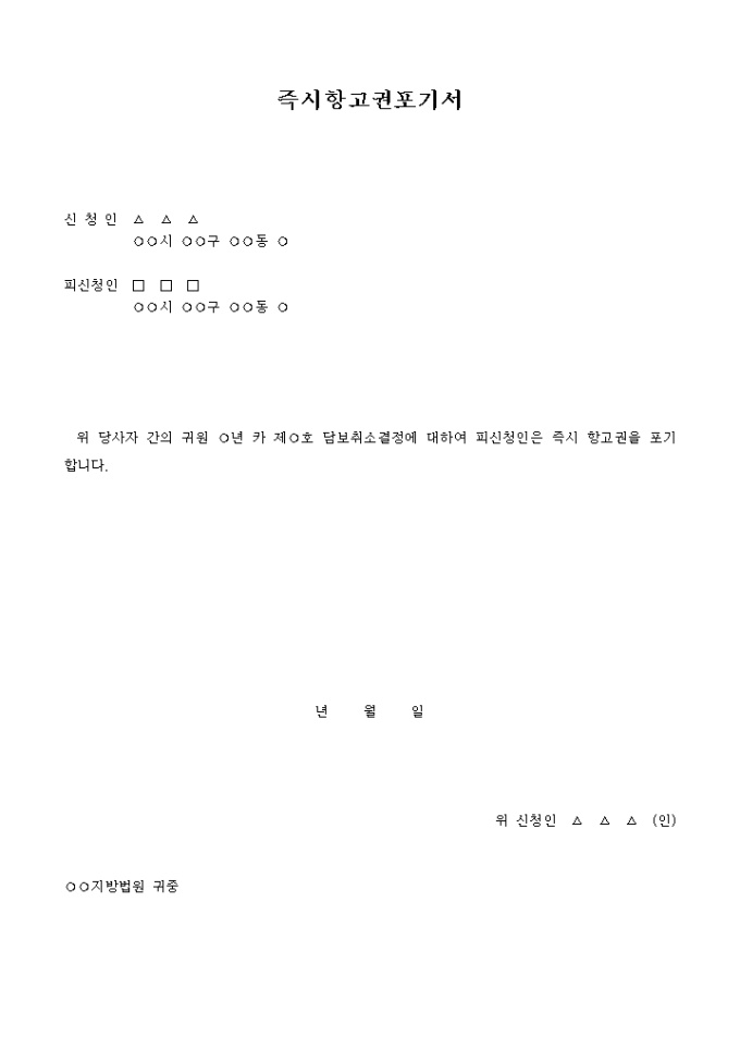 9,000원/월담보취소결정에 대하여 피신청인은 즉시 항고권을 포기한다는 내용입니다.