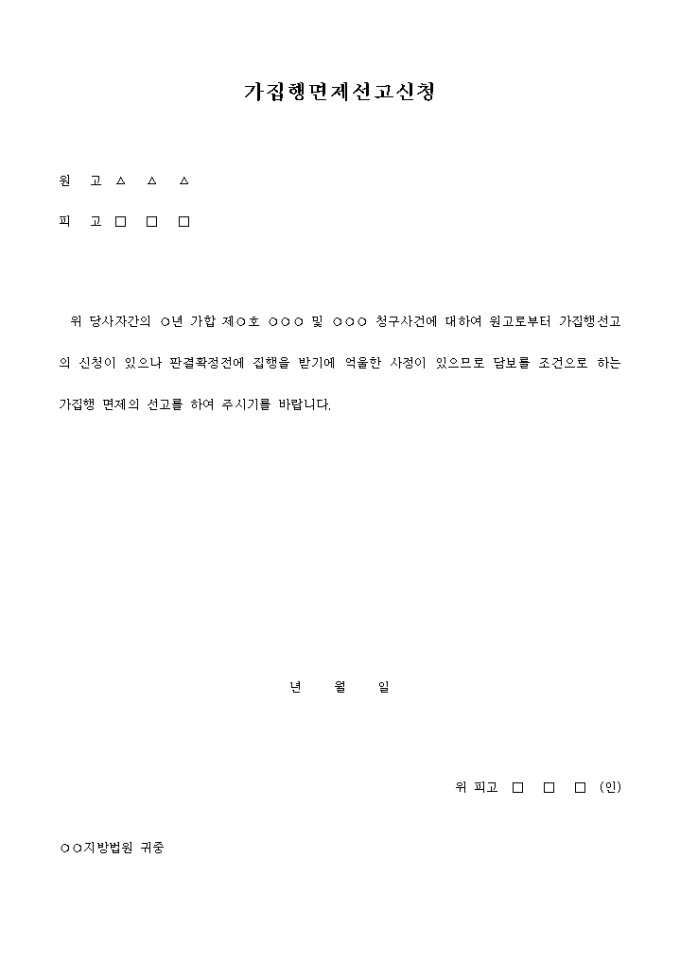 9,000원/월...청구사건에 대하여 원고로부터 가집행선고의 신청이 있으나 판결확정전에 집행을 받기에 억울한 사정으로 인해 담보를 조건으로 하는 가집행 면제의 선고를 신청한다는 내용입니다.