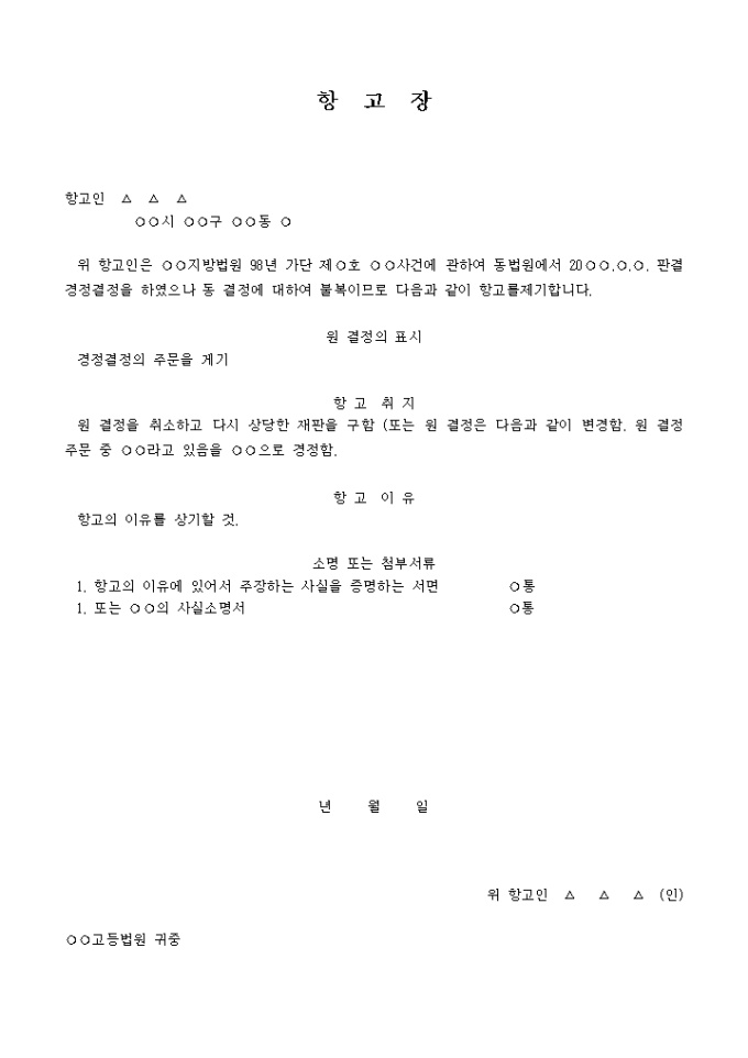 ...사건에 관하여 동법원에서 20 . . . 판결경정결정을 하였으나 동 결정에 대하여 불복함으로 항소를 제기한다는 내용입니다.