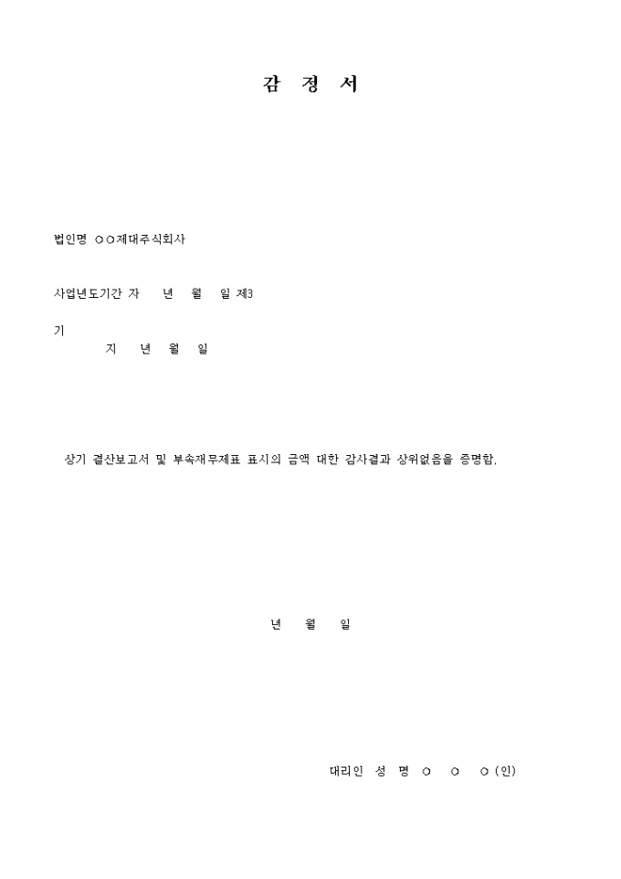 9,000원/월감정서 입니다. 상기 결산보고서 및 부속재무제표 표시의 금액 대한 감사결과 상위없음을 증명함. ...