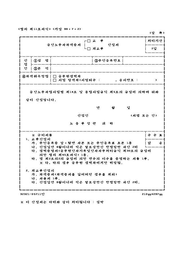 9,000원/월공인 노무사 자격증서(교부,재교부)신청서 양식입니다.