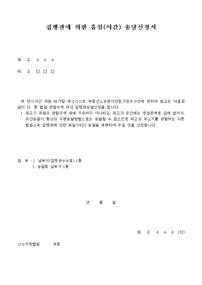 집행관에 의한 휴일(야간)송달신청서