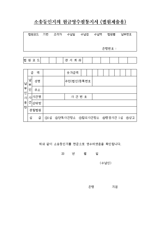 소송등인지의 현금영수필 통지서
