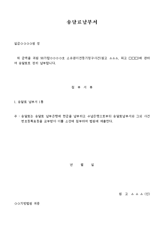 송달료 납부서(소유권이전등기)