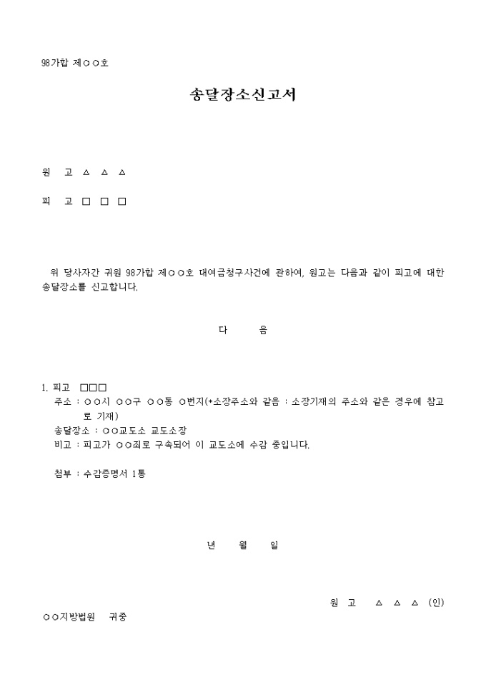 9,000원/월대여금청구사건에 관하여 , 원고는 ..과 같이 피고에 대한 송달장소를 신고한다는 내용입니다.