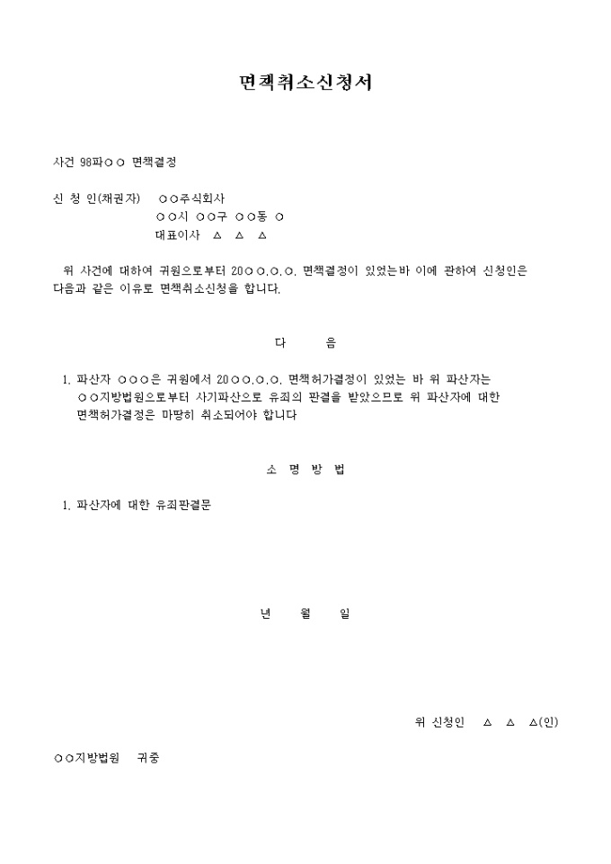 9,000원/월면책결정 사건에 대하여 면책결정이 있었지만 면책취소신청을 한다는 내용입니다.
