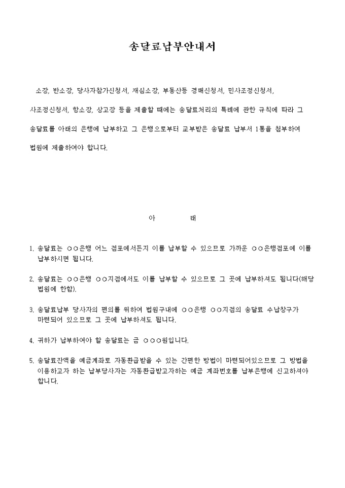 법원의 송달료 납부안내서로 5항까지 있습니다.