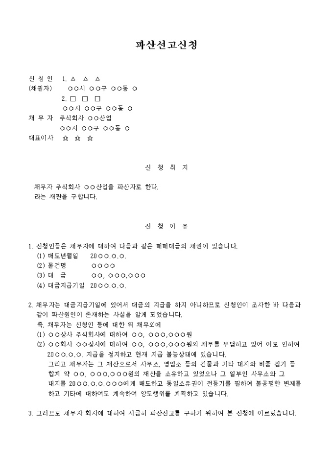 9,000원/월채무자 주식회사 ○○산업을 파산자로 한다라는 재판을 구하는 내용입니다.
