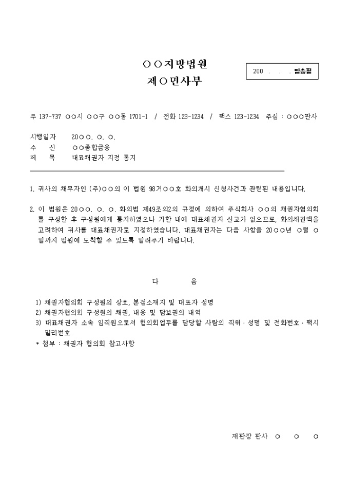 9,000원/월대표채권자 지정 통지서입니다.