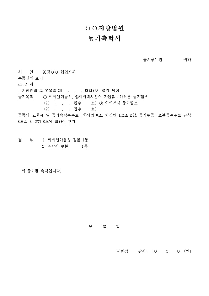 9,000원/월화의개시에 관한 사건의 등기촉탁서(등기·등록의 말소)입니다.