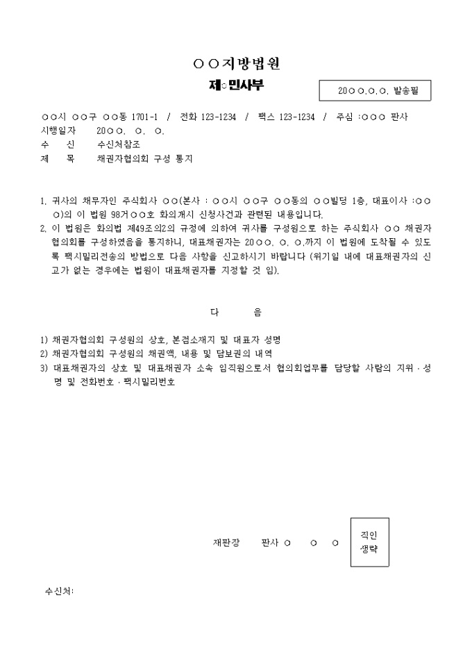 채권자협의회 구성통지 양식