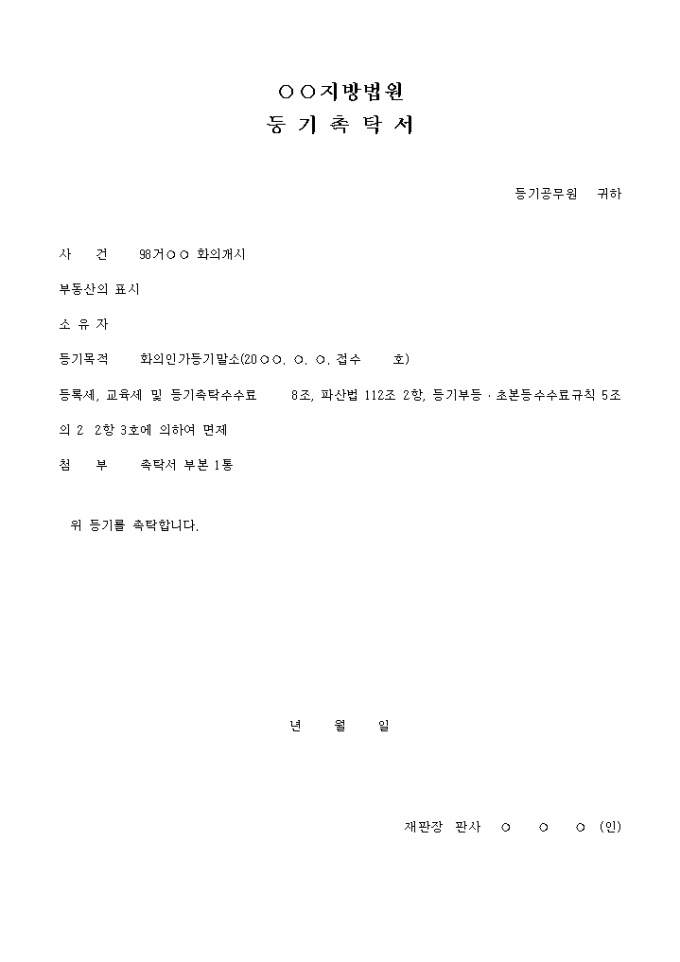 9,000원/월화의인가등기말소 촉탁서입니다.