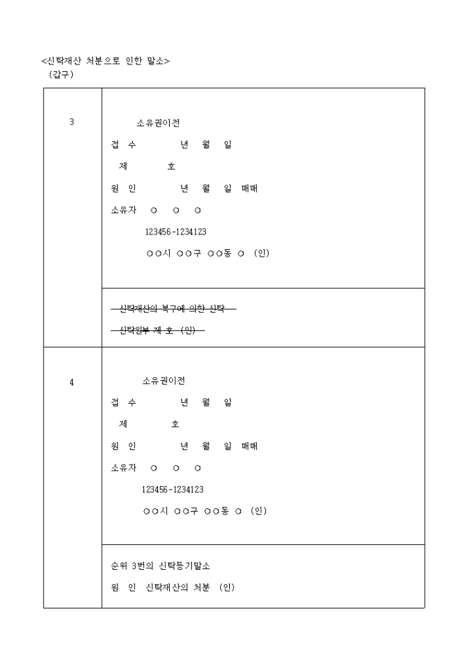 9,000원/월소유권이전등기및신탁등기말소등기(매매)신청서 입니다.