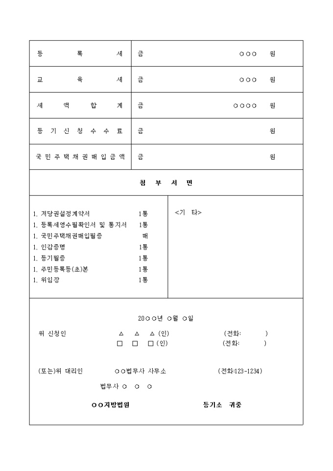 9,000원/월저당권설정등기(금전이외의 채권담보)신청서 입니다.