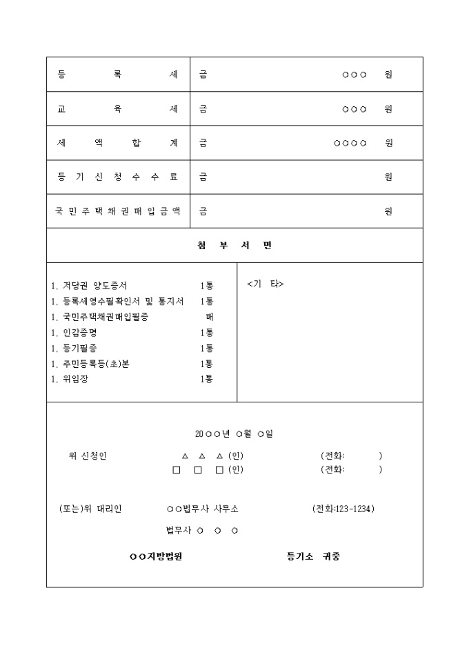 1. 등록세영수필확인서 및 통지서 1통